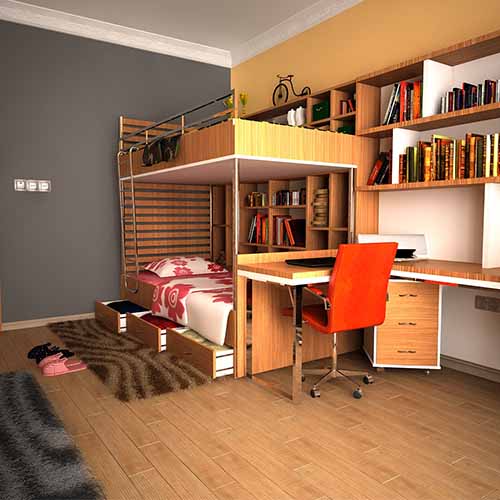 Yaşam Alanı, Yatak Odası, Giyinme Odası ve Banyo-WC -Oda 2-